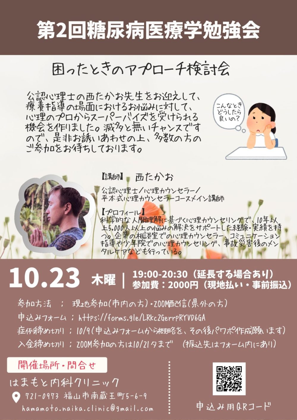 10月23日に公認心理士の西たかお先生をお迎えして、療養指導における「困った」についてスーパーバイズを受ける機会を作りました。
